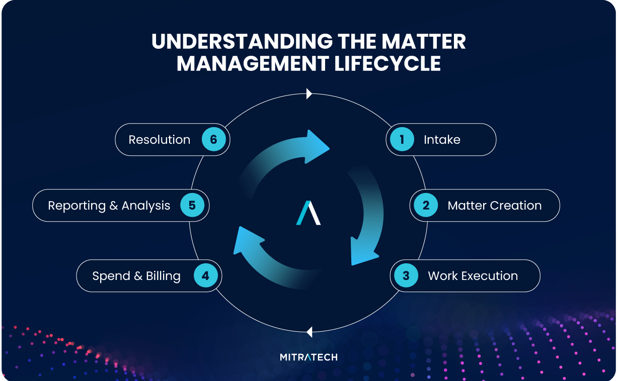 This lifecycle supports end-to-end legal operations by connecting work, data, and decision-making in a single system.